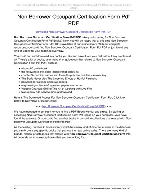 Download Non Borrower Occupant Certification Form Pdf Library Binding